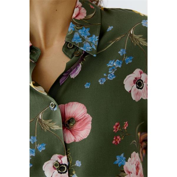 Blouse made of shiny viscose twill with floral all-over print.