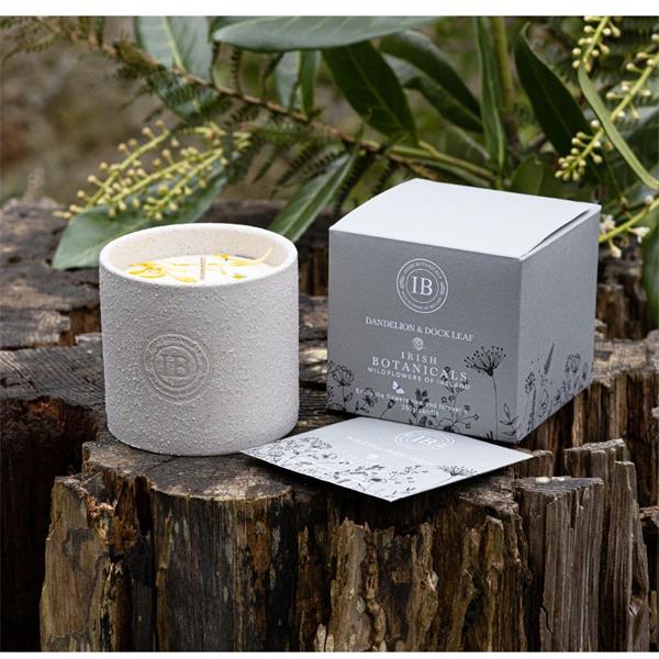 Irish Botanicals wildflower of Ireland collection. The Dandelion & Dock Leaf candle  is a lovely gift for any ocassion