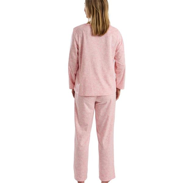 and effortless elegance. Perfect for cosy nights and laid-back mornings, this women’s fleece loungewear set features a beautifully printed, soft-touch fabric that feels gentle against the skin. Our flattering V-neckline top has a short buttoned placket for ease, while the full-length pants offer a relaxed fit for all-night cosy comfort.