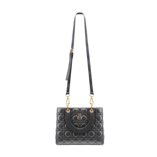 The Genoa Handbag is a structured style with a circular overtstitched quilted design. Made from animal friendly leather this bag is in midnight Black