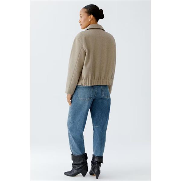 Discover the stylish Ouí Jacket in a chic taupe shade, perfect for adding a contemporary twist to your wardrobe. Embrace the mega trend of transitional jackets with this versatile piece, designed to keep you looking fashionable in changing weather. Crafted from soft fabric that mimics a woollen look, this jacket offers both comfort and elegance.