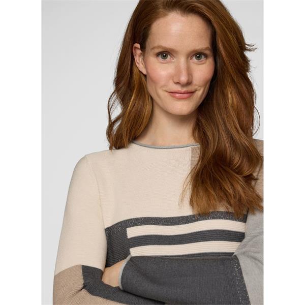 The RABE Block Pattern Jumper in Macchiato is a stylish blend of comfort and contemporary design. Featuring a modern block pattern in soft neutral tones, this jumper is crafted from a cosy, lightweight knit that’s perfect for layering. A versatile piece, it adds effortless elegance to both casual and smart outfits.