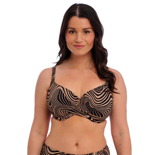 Feel elegant in Pemba Island, with its sophisticated and calming wave print. Featuring a black and taupe geo print, this collection is flattering to all. Be sure to check out our High Waist Brief with sophisticated belt detailing and silver metallic trim.