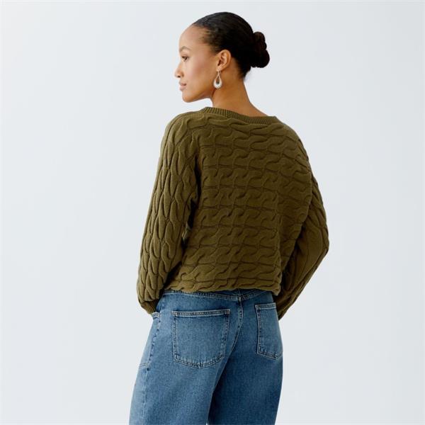 Introducing the Ouí Sirah Sweater in Burnt Olive—a stunning addition to your wardrobe that combines comfort with contemporary style. Designed for those who seek elegance without sacrificing coziness, this pullover is your new go-to piece.