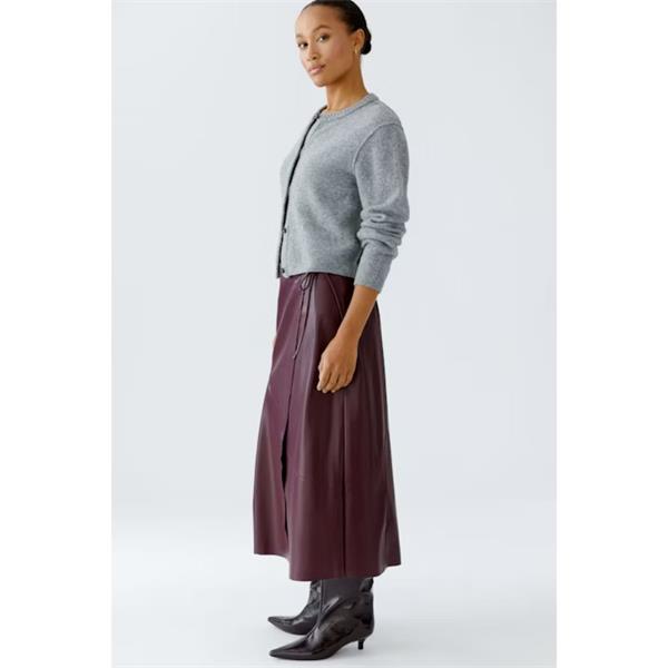 Discover the stunning Ouí Skirt, a must-have addition to your wardrobe that effortlessly combines style and comfort. This leather-look wrap skirt is designed to make you feel both chic and confident.