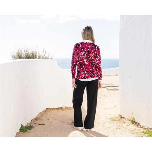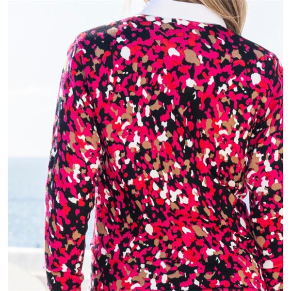 Elevate your autumn wardrobe with this Marble Fuchsia Sweater, a stunning addition that combines comfort with a vibrant style. This classic fit V-neck jumper showcases a striking print, bringing a unique and abstract pattern to life with a mix of colours that create an eye-catching statement piece.