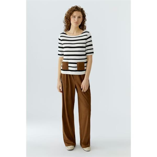 Pullover in trendy stripe design with appliqué pockets in suede look.
