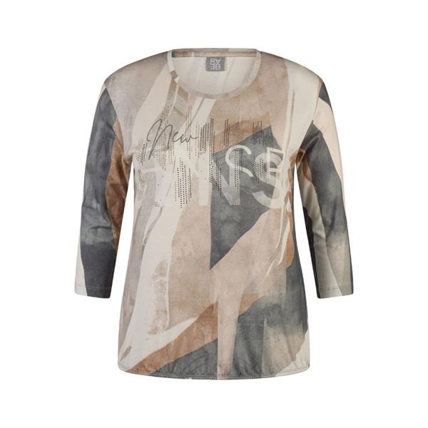This RABE top impresses with its abstract all-over pattern, highlighted by sparkling rhinestone accents for a touch of elegance. Crafted from a soft cotton-modal blend, it offers a skin-friendly feel and lasting comfort. The round neckline and 3/4-length sleeves create a timeless silhouette, making it a versatile choice for everyday and leisure looks.