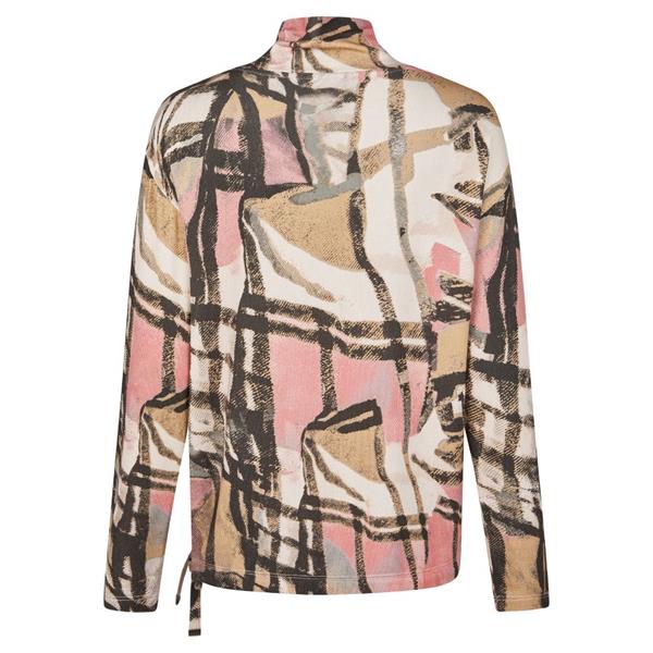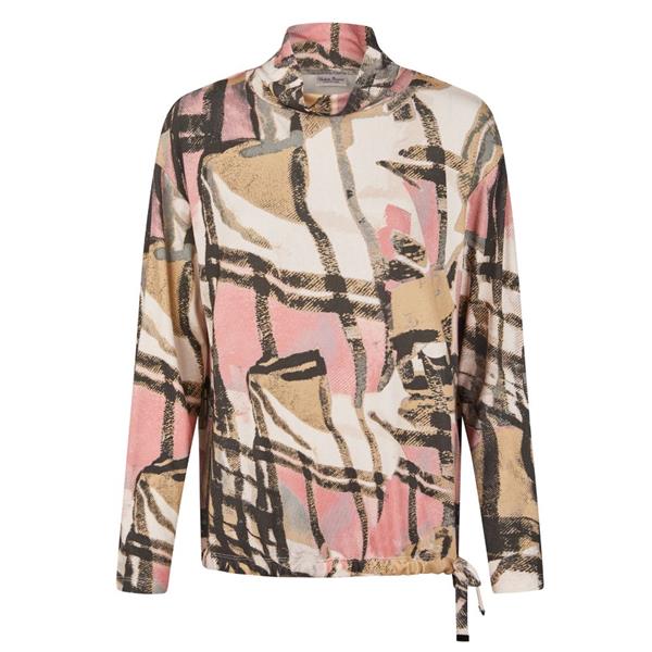 This top features a beautiful pink and nude base adorned with an abstract brushstroke print, ensuring you stand out in style. Crafted with a soft cowl neckline that drapes effortlessly, it offers a relaxed fit perfect for any occasion. The long sleeves are finished with a clean edge, providing a polished look that transitions seamlessly from day to night.